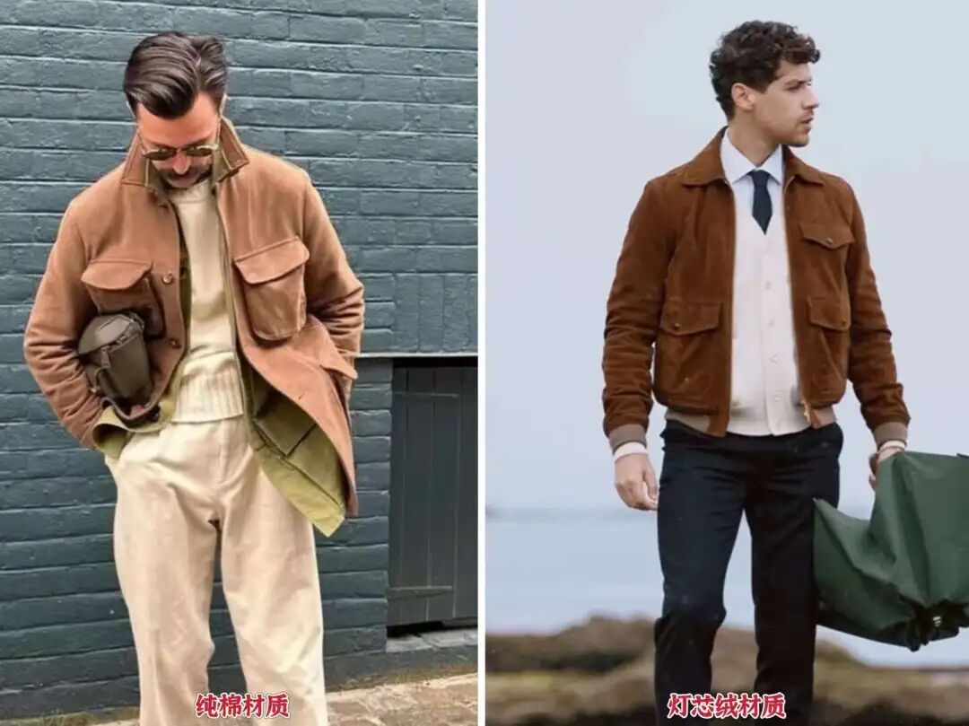 其次,就是夹克外套了,它的面料材质比较多样化,常见的就是锦纶、纯棉和灯芯绒,还有就是鹿皮材质的。