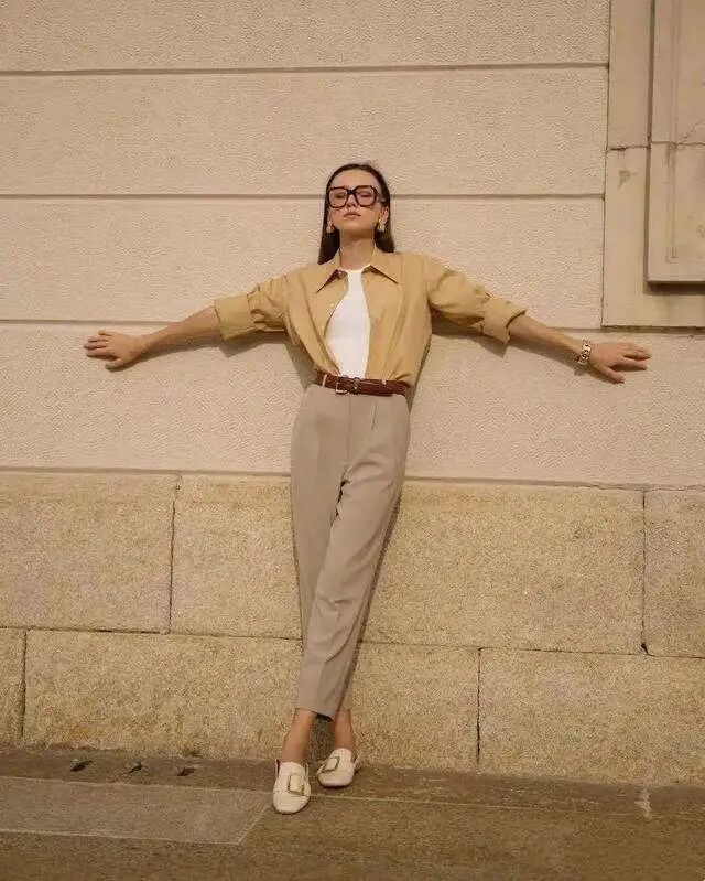 裤子没有版型,要么穿上去邋里邋遢,要么穿上去紧绷感很强,两极端的裤型穿上身都会显矮和显胖,甚至会显土气感。能恰好显瘦和显高的裤子,才是好的版型。