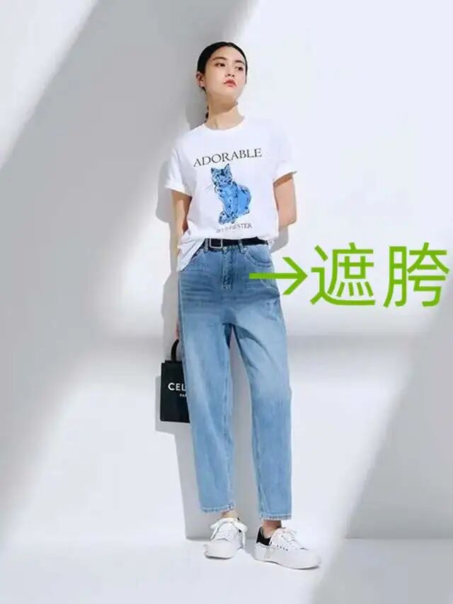 腰线的位置,最好是超过了肚脐,在肚脐以下的腰部设计建议不要去考虑了。一方面这不是显高的最佳高度,其次肚脐一下就是胯部的位置,分分钟都能将胯宽的问题凸显出来。