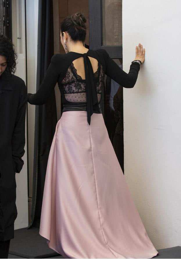 在对穿搭的巩俐来讲,只要穿在她身上的穿搭都不会丢失任何穿搭气场,下图照片中,巩俐穿了一件黑色蕾丝镂空性感长袖紧身长裙,巩俐黑色紧身上衣搭粉裙,打扮偏“嫩”,但背后的赘肉暴露一切!