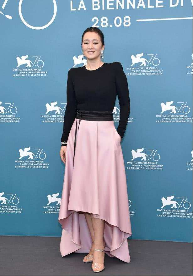 巩俐黑色紧身上衣搭粉裙,打扮偏“嫩”,但背后的赘肉暴露一切!