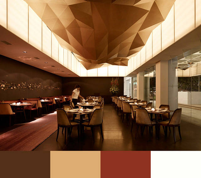 颜色可以影响甚至决定人们在餐厅里面的体验,选取合适的配色方案,让用餐的客人视觉上得到最好的体验,这是餐厅室内设计当中必须予以重视的一个方面。