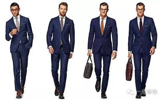除了灰色外,海军蓝也是西装首选的颜色。相比于黑色的严肃,灰色的随性,海军蓝更理性,视觉体验上也更跳脱。
