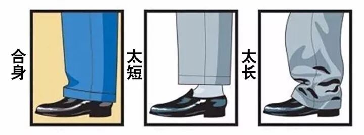 裤腿的宽度对西装的整体形象极其重要,站立式从大腿后面捏着裤管往后拉,是否有2-3cm多余的布料。长度以稍微该在皮鞋上为佳,露出脚踝的话就是纯时尚风格的搭配了,可以用于不怎么正式又需要穿西装的场合。