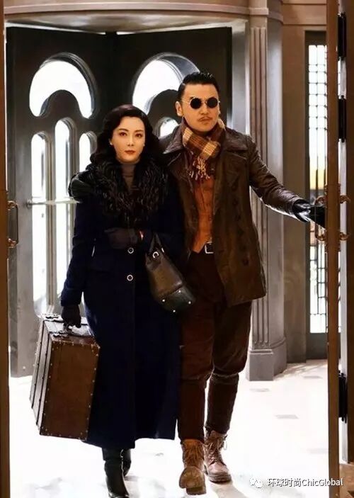 一出场,陈佳影就显示出强大的气场,全身上下没有logo的装饰,波浪形卷发没有多余的杂发、一身X型大衣显示出身材的妩媚、貂皮大毛领显示出身份的尊贵,纯色流浪汉单肩包,手提皮质行李箱,一切有板有眼。