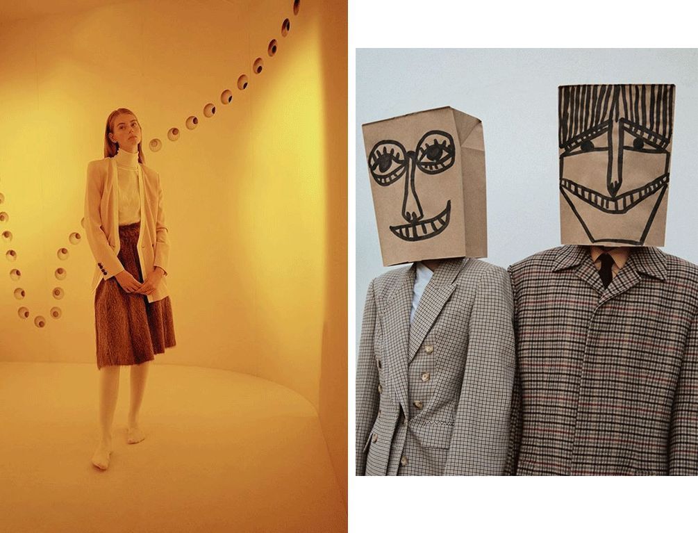 ▲左图的格子大衣以及右图中的缎面西装都来自mango