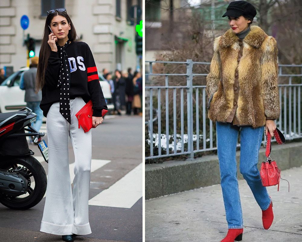 就比如包臀裙+短靴,毛衣+阔腿裤,这些基本单品的组合因为绚烂的色彩反而进阶了一个层次。