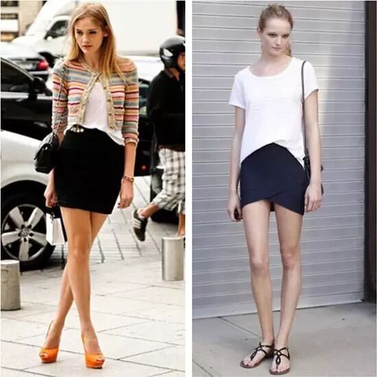 穿短裙个子矮的女生在下装的选择上要讲究一些,如果想显高,有两种方式:一是穿短裙;二是穿超长的,不管是长裤还是长裙。绝对不能穿不上不下长度的及膝或者七八分,穿短裙的话可以多露一点皮肤同样可以拉长双腿。