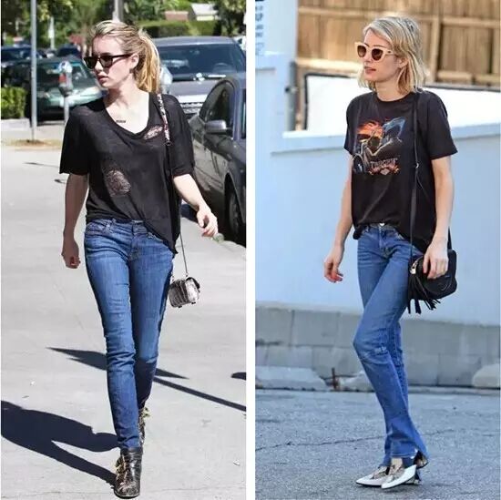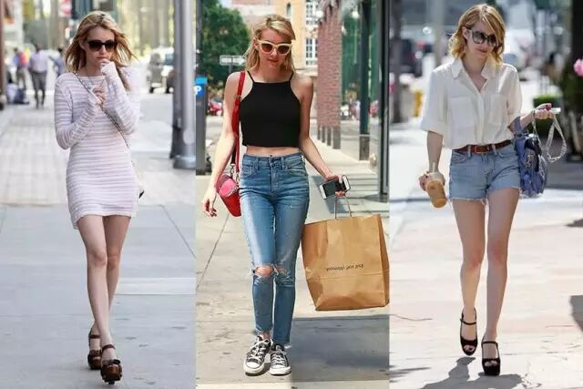 身高只有157cm 的女星 Emma Roberts,向来都是小不点女生的穿搭指标。Emma 的显高穿搭重点,和 Miroslava 有异曲同工之妙。