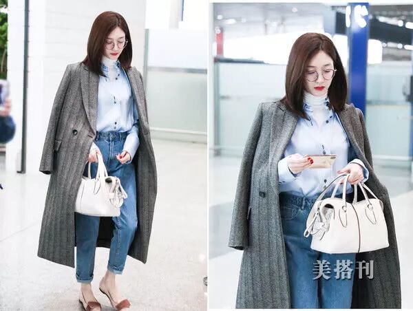 除了刘雯,最近也有很多其他女星爱上了这样帅气有范的内搭造型。江疏影用白色高领衫搭配蓝色绸缎衬衫,这身内搭清新高级,让外面的灰色大衣丝毫不显沉闷老气感。