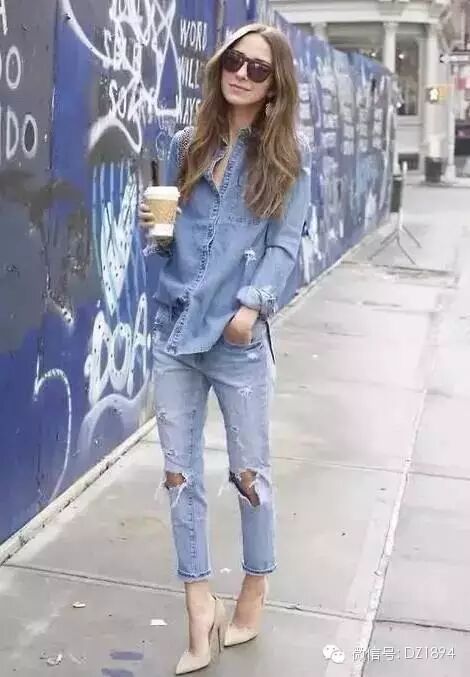 衬衫塞一半露一半,据说这是今年最流行的穿法!