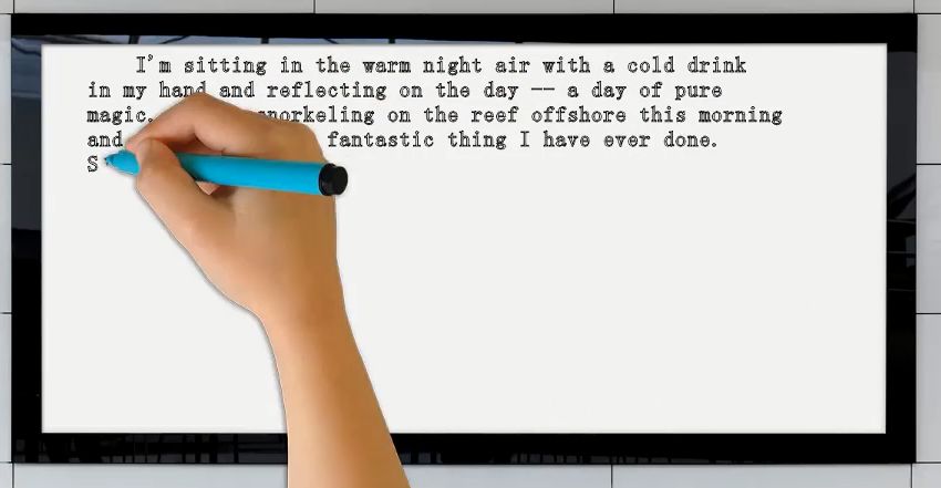 但是,写字的速度一定要和语音速度相匹配,否则声画不同步,就会带来彼此的干扰。尤其是在手绘动画强烈吸引视线的情况下,观看者几乎无法聆听教师的朗读。