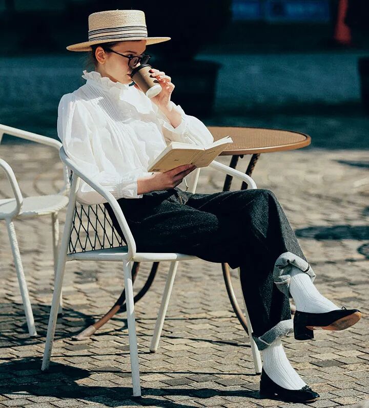 针织开衫+背心,再搭配半裙和玛丽珍鞋,熟龄女孩也可以驾驭哦。