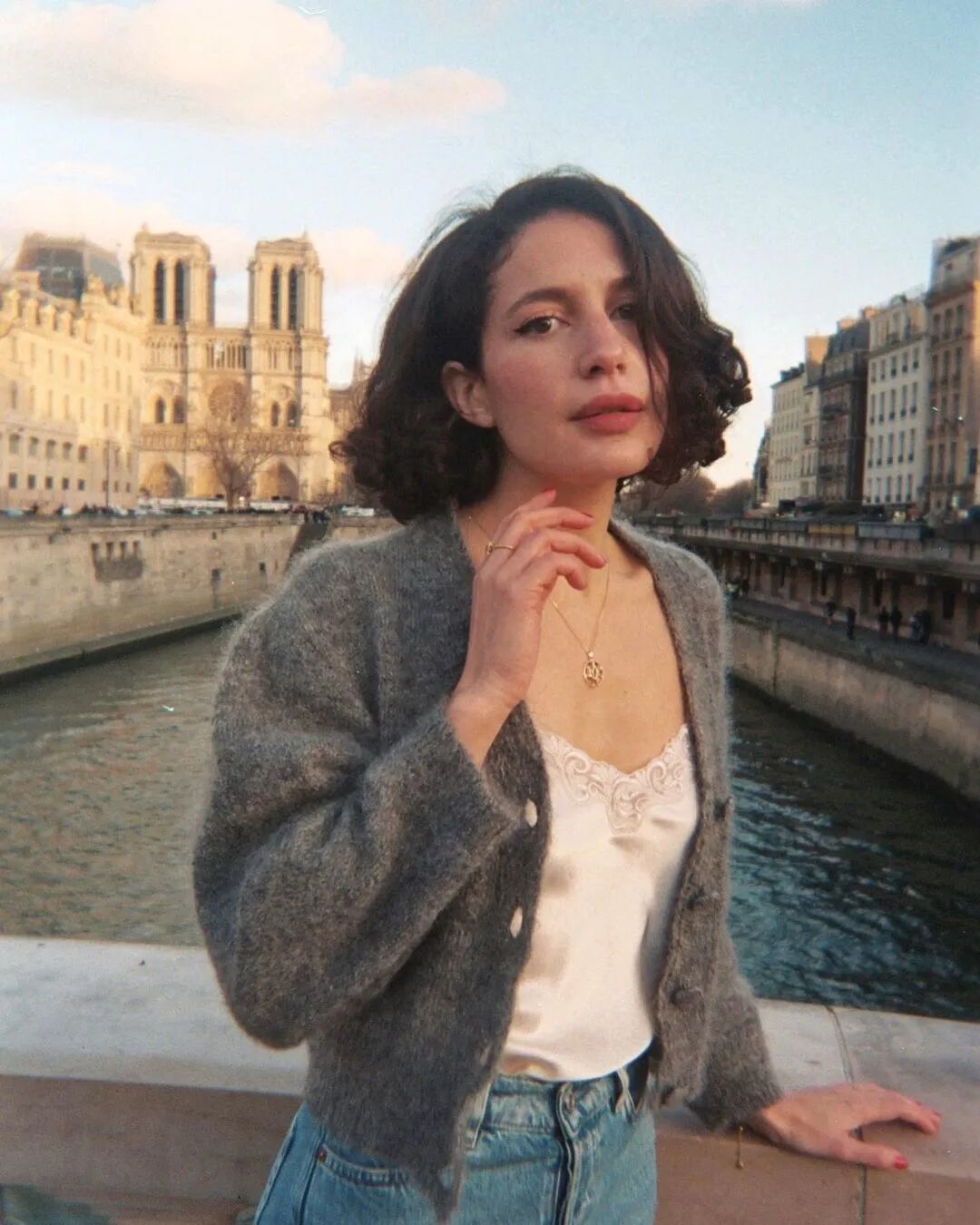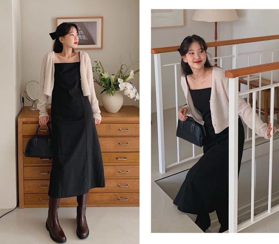 小黑裙搭配轻薄开衫,也挺有浪漫法式氛围感的。