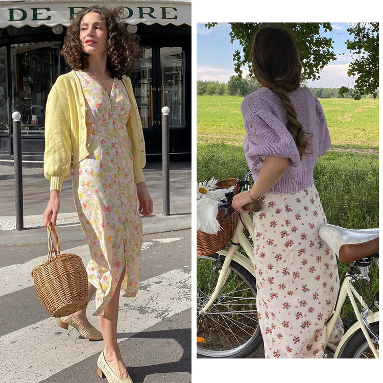卫衣+短裤,加入了优雅单品的混搭。夏天的碎花裙,搭配这种针织开衫来穿,是不是尤其适合度假~