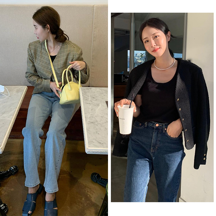 而上长下短的穿法呈现出来的视觉效果,是随性的、慵懒的。