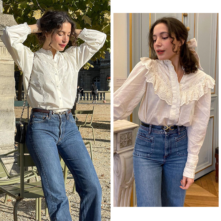复古白衬衫+牛仔裤的造型,经典永不过时。