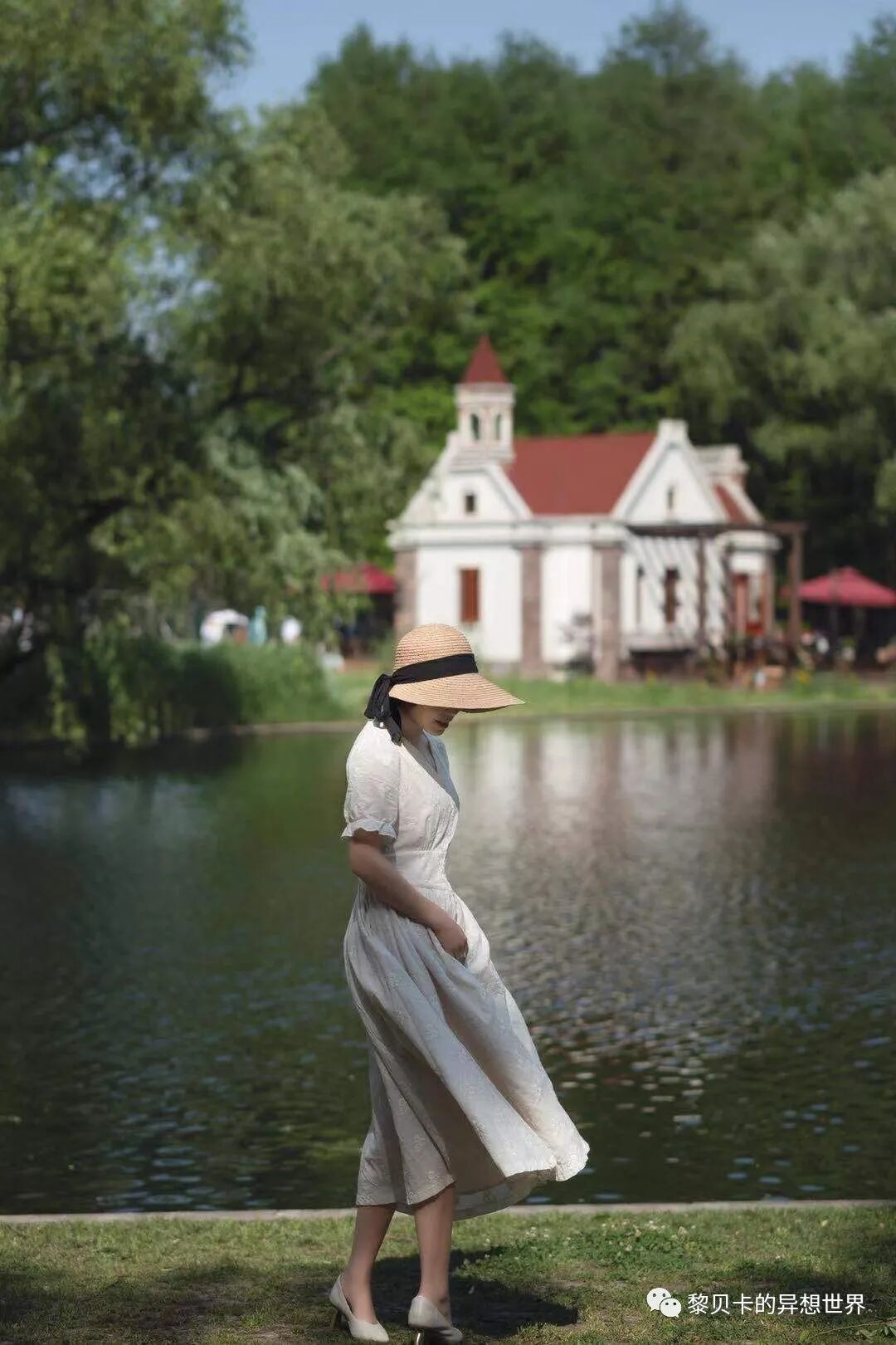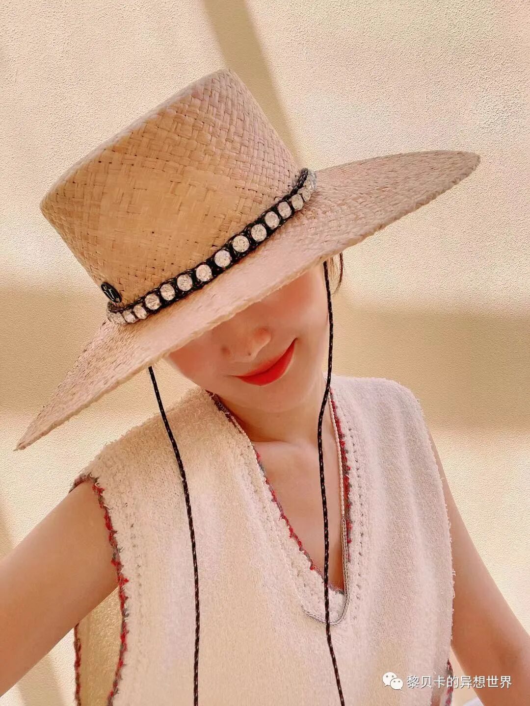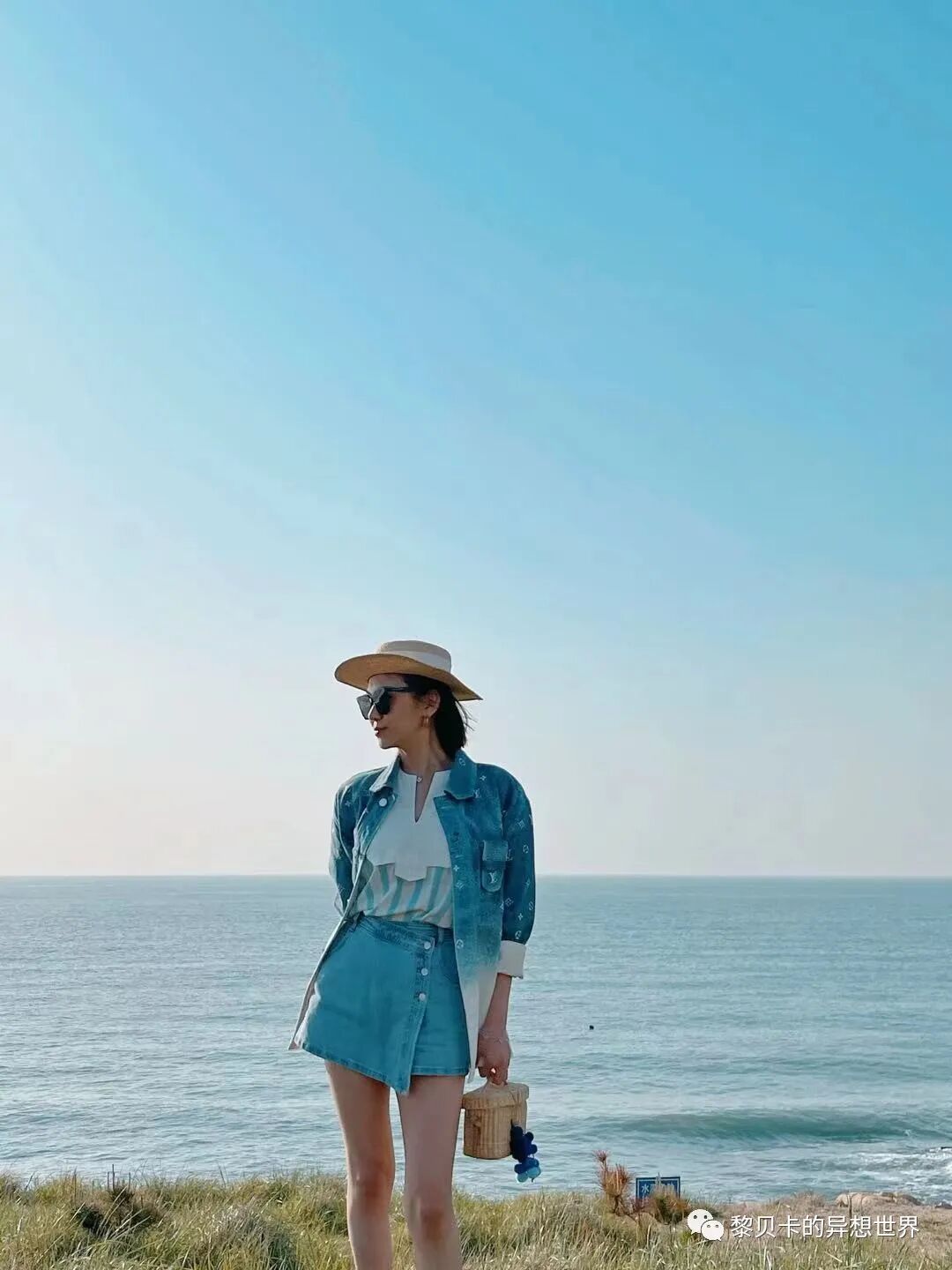 白裙+草编帽+卷发,氛围感立马上升,搭配大部分风景没问题️。▼熊猫娟儿Joy~: