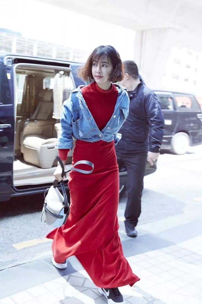 红色+牛仔裤:不羁的自由如果要论日常生活中的红色穿搭法,配牛仔单品是可操作性最高的一个选择。
