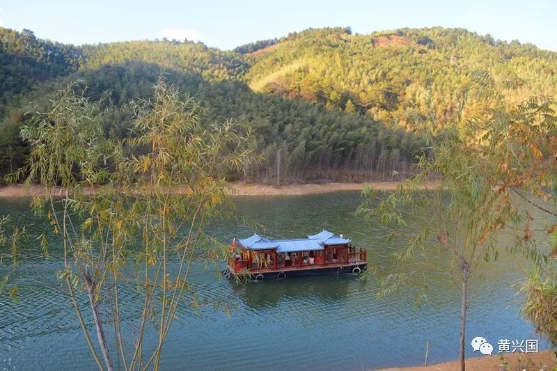 露营基地下面的山谷有一个“念山湖”,在这高山上居然有一个湖泊,这实属难得。湖水像一块绿色的翡翠,望去让人心旷神怡。湖面上有一艘画舫,在缓缓的漂流,平静的湖面被激起一圈圈的涟漪。透过画舫的船窗,可以看见画舫里坐着几位美女,在悠然自得的游湖。泛着涟漪的湖水、漂亮的画舫、青春的女子,此情此景,很容易让人想起杭州的西湖。可惜,星溪乡领导没有安排我们这帮秀才游湖,享受不到那份水上漂游的悠哉。