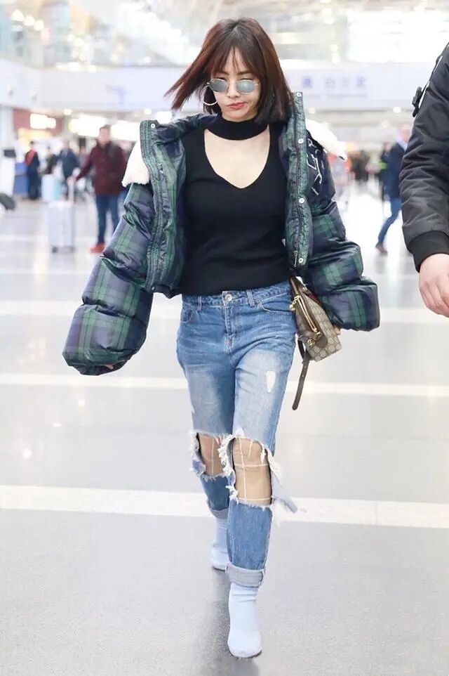 蔡依林穿“酒杯裤”,上衣随意搭件小羽绒服,时髦显高又洋气!