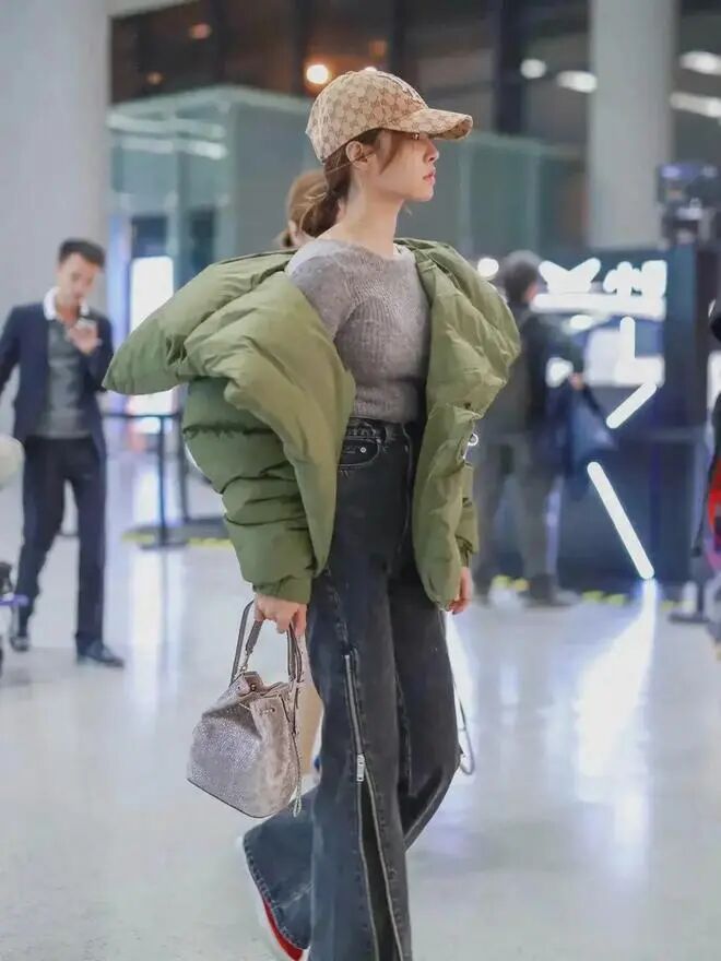 “酒杯裤”是一种宽松而舒适的裤子,穿上之后可以形成一定的蓬松感,让人看起来既有时尚感又很舒适。蔡依林穿着这款裤子展现了她独特的时尚品味和个人风格。蔡依林以往的形象总是带有一些少女的元素,但这一次,她选择了一种更加随性和个性的穿搭方式,展示出了自己的时尚态度。绿色短款羽绒服是整个造型的点睛之笔。这种鲜艳的绿色给人一种生机勃勃的感觉,和灰色打底的搭配更加凸显了蔡依林的时尚与个性。整个人看起来既活力四溢又有一点帅气。蔡依林的发型整洁利落,微微卷起的长发流露出一丝俏皮,与造型相得益彰。
