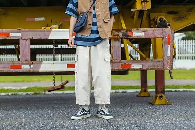 除了工装裤之外,阔腿裤也会是瘦小男生的选择,主要以宽松为主的版型,穿搭也比较方便时尚,是最近男女生都很喜欢的一款单品。