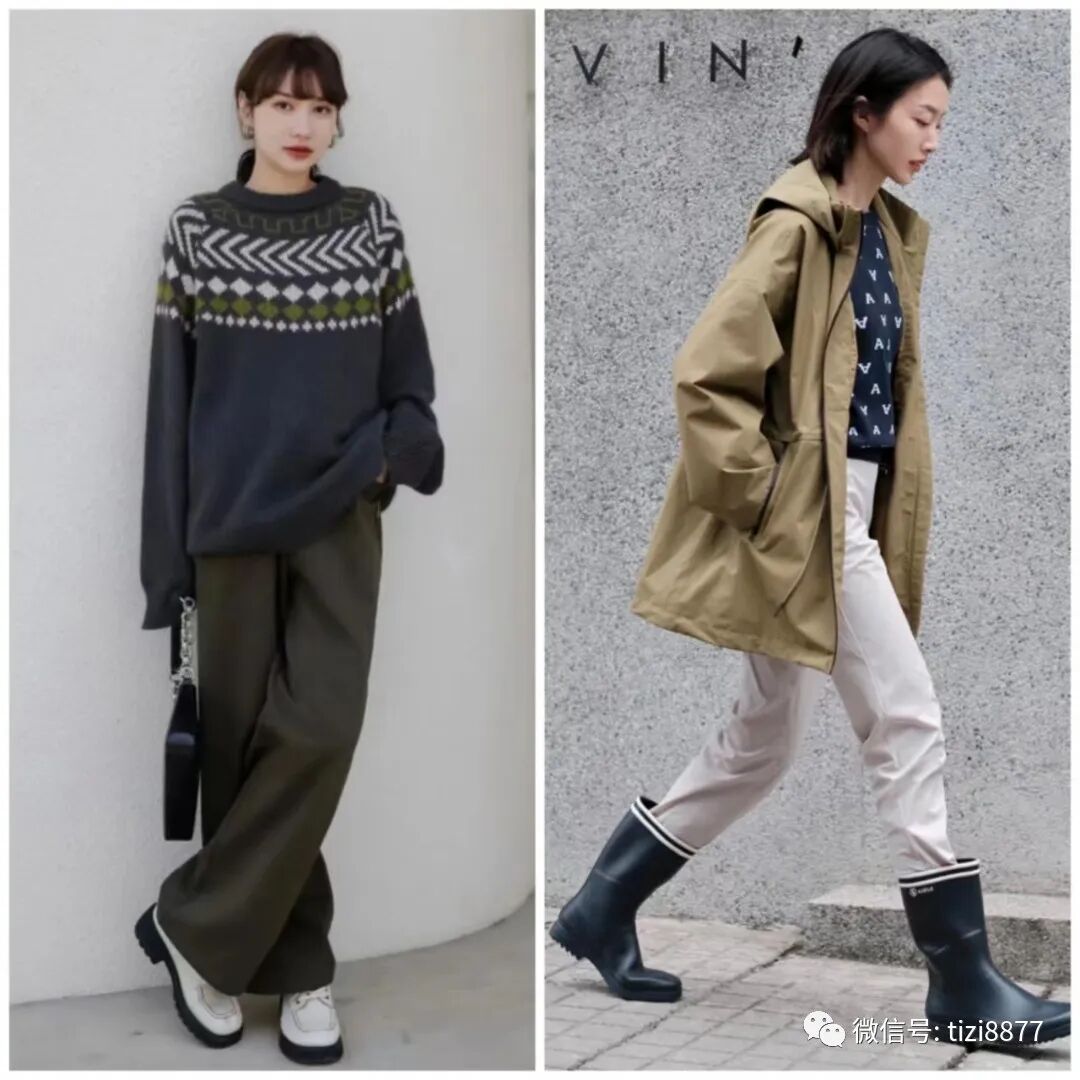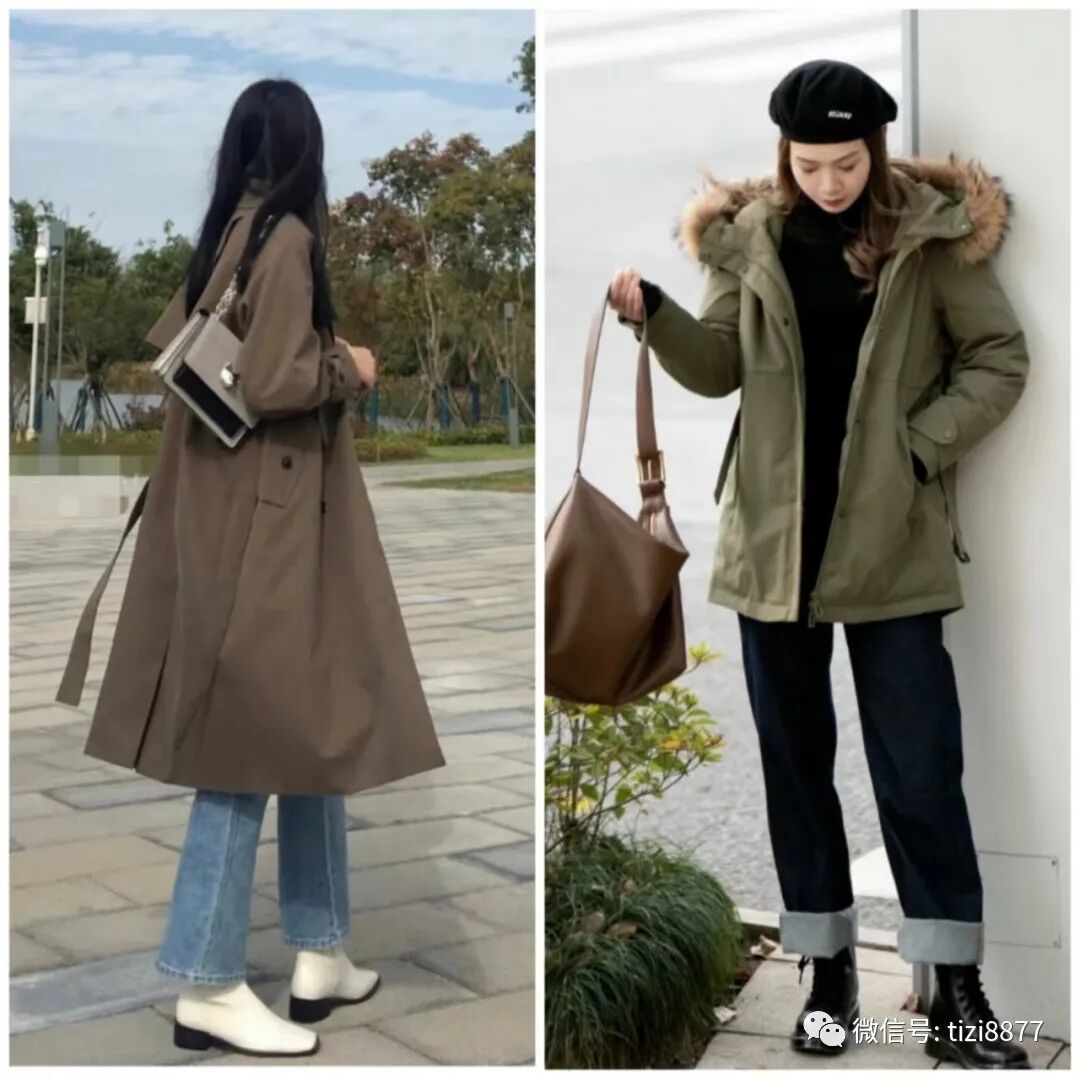 卡其色是个超级显气质的颜色,而硬朗的军绿配上柔和气质的卡其色系更是充满了复古气质,而且这种颜色还不挑肤色,任何身材的人穿起来都很不错。
