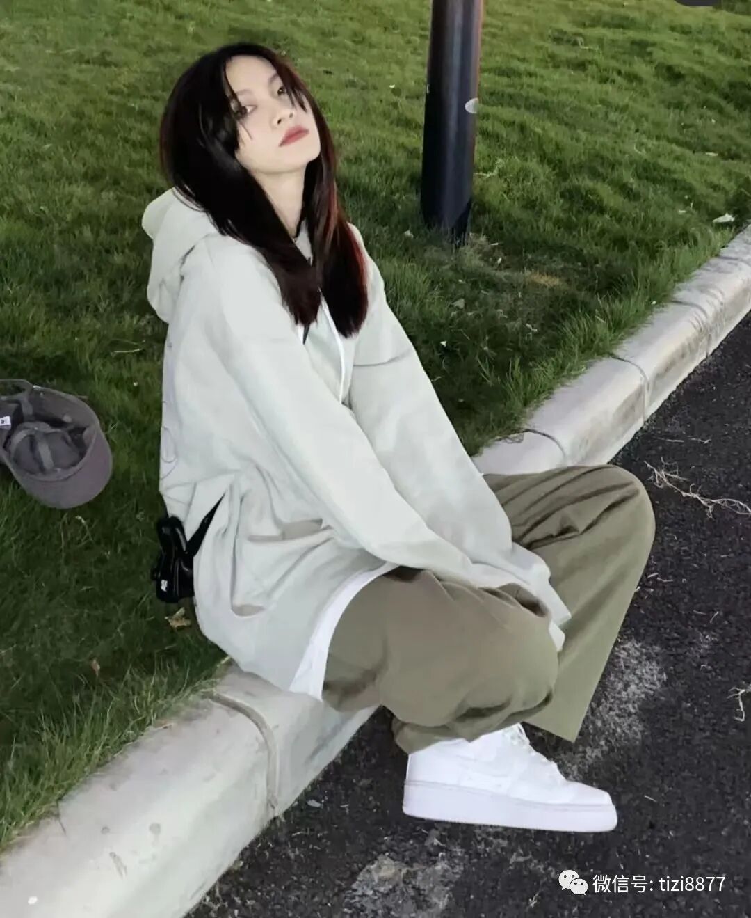 look3 灰色宽松卫衣+军绿色工装裤