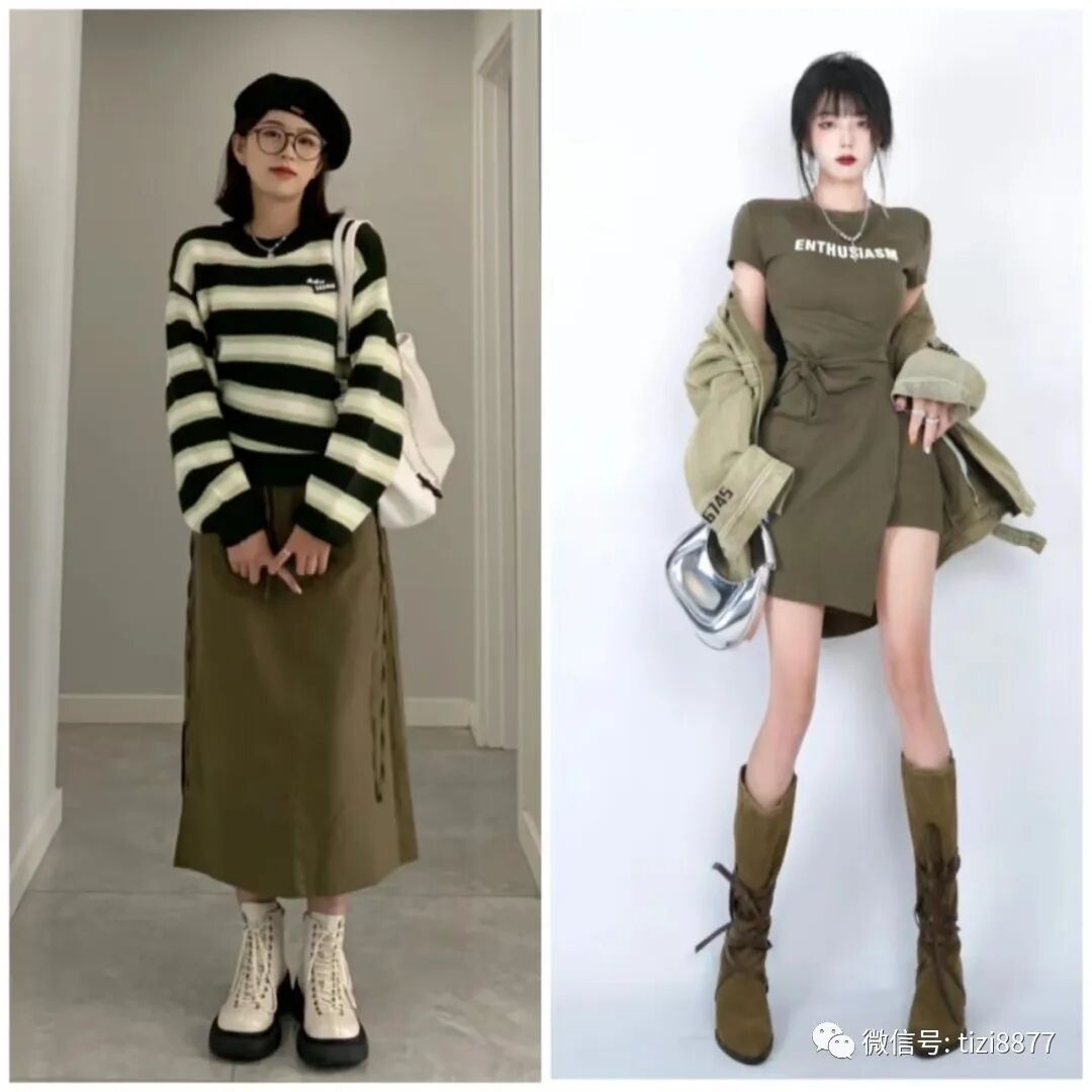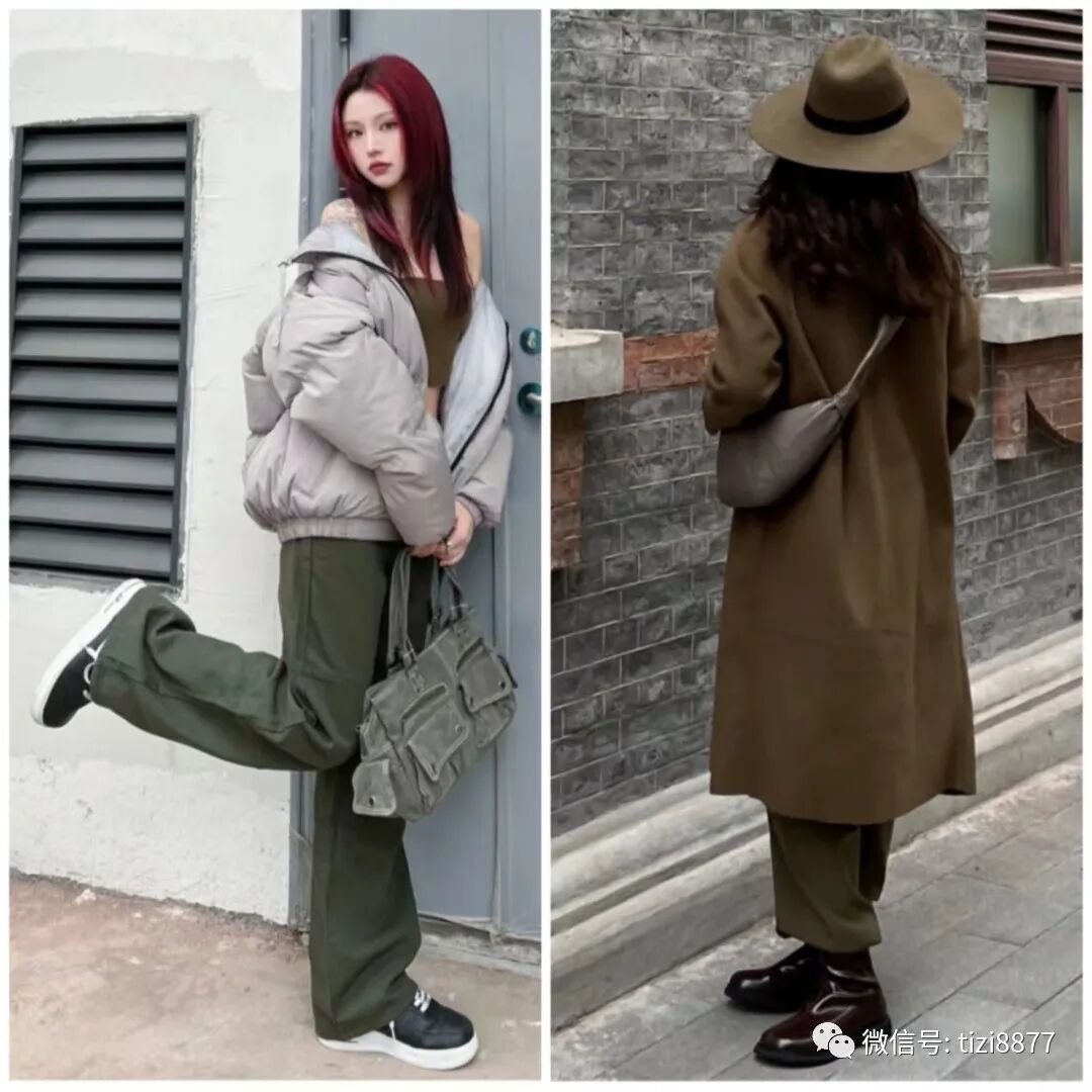 白色的衣服是百搭神器,而军绿色的稳重可以让整体看起来因为和谐而提升了好感度。