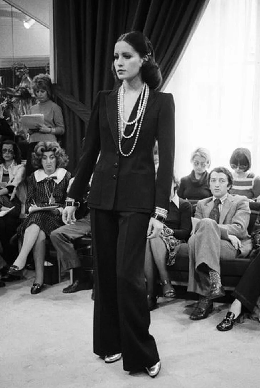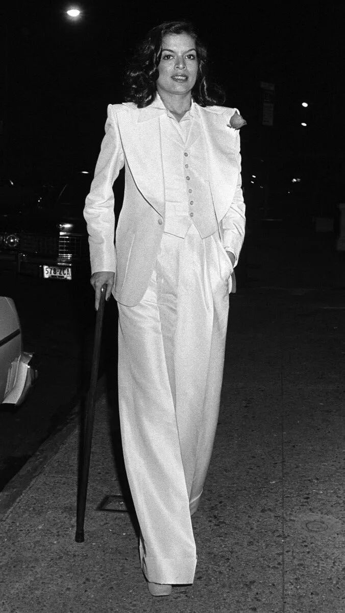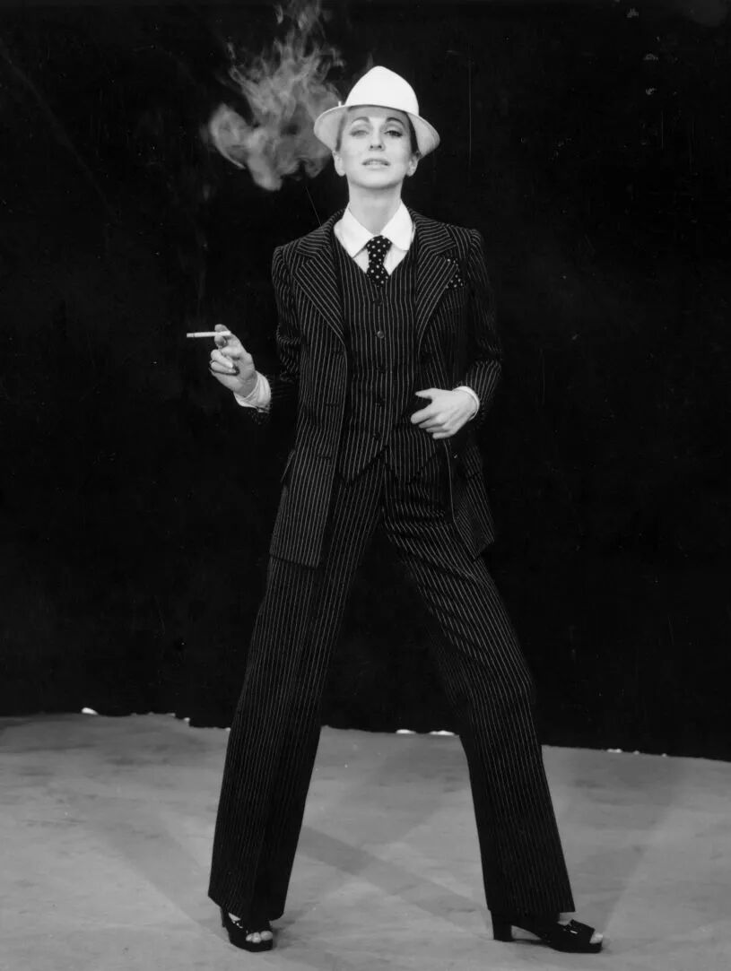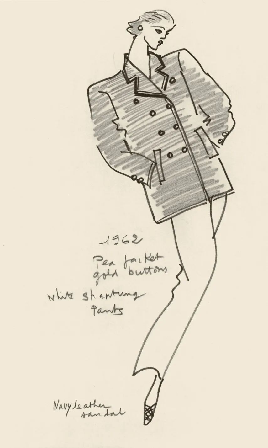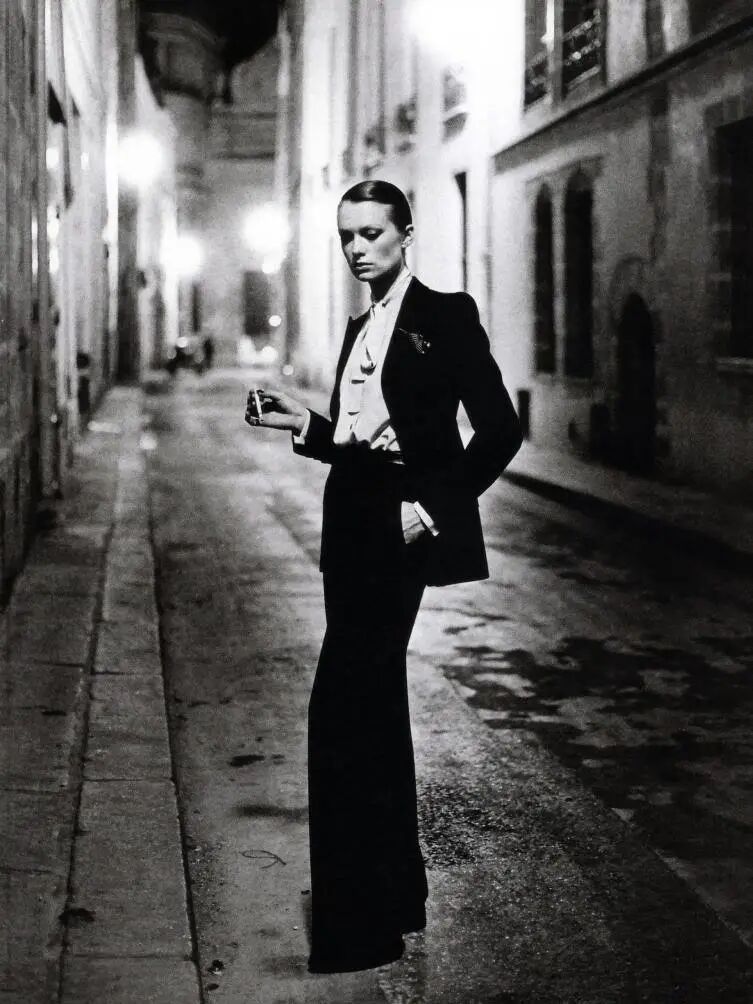in SAINT LAURENT虽然现在大家已经习惯看到女孩穿各种男装,但是回到60年代,能在那个环境里提出这种着装方式的,圣罗兰先生还是第一人。今天我们能听到的Pea Coat海军大衣,Safari Jacket狩猎装,Le Smoking Tuxedo吸烟装,都是圣罗兰先生的发明。他从传统的男性着装中吸取灵感,增加符合女性美感的设计,像变魔法一样把西装变得比裙子更性感。