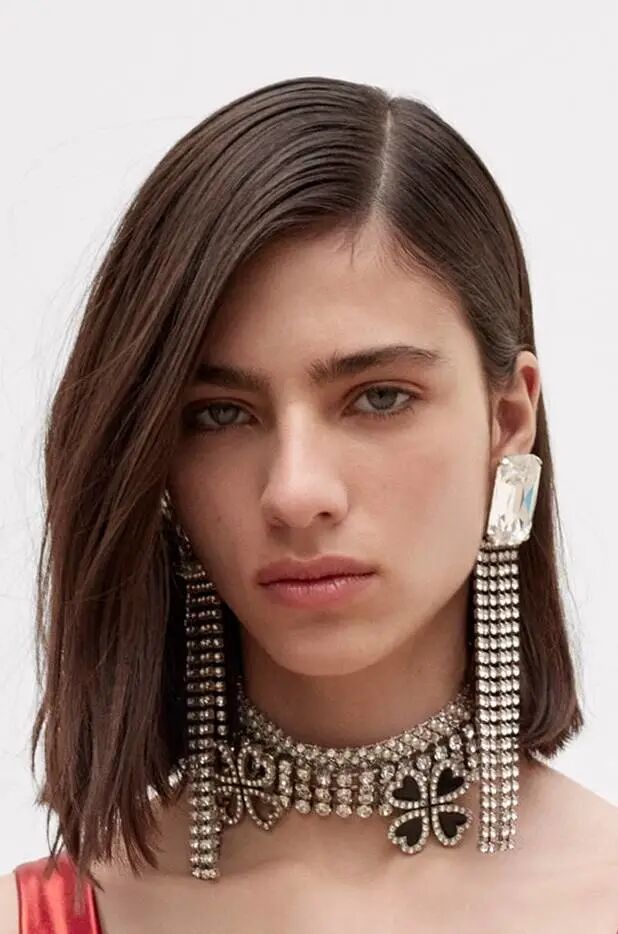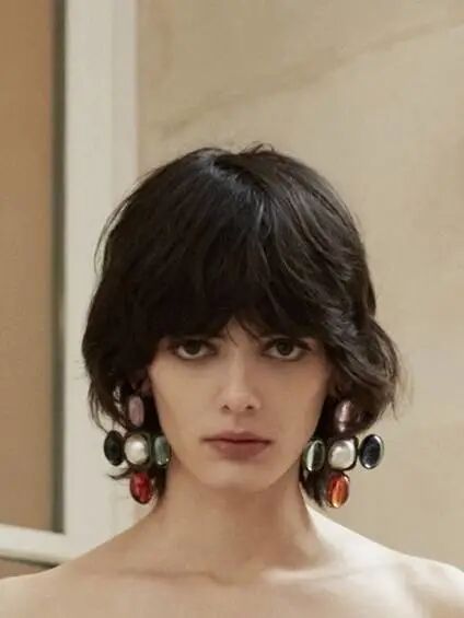 Lookbook里很多模特都是齐刘海齐肩短发,这样的发型有一种克制感。对比起充满波西米亚风情的大波浪,多了一点凌厉,少了一份亲和。