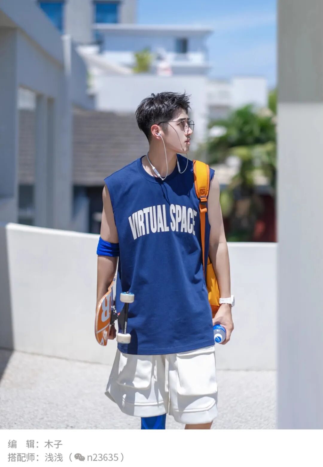 撞色搭配是夏季男生穿搭中的一大亮点。