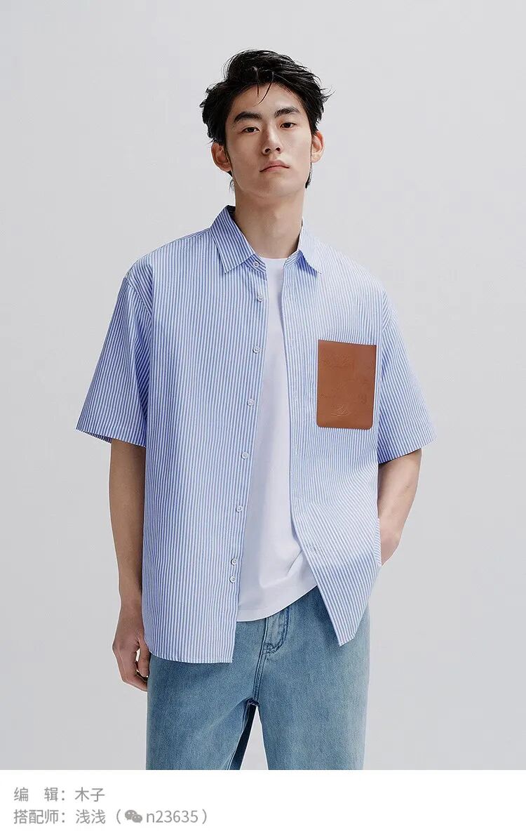 夏季可以选择棉质或麻料的衬衫,颜色上以浅色或条纹款为主,既能散热又具有时尚感。