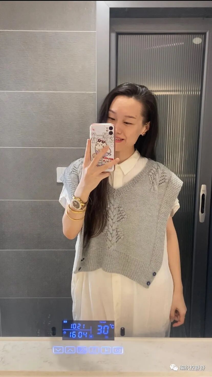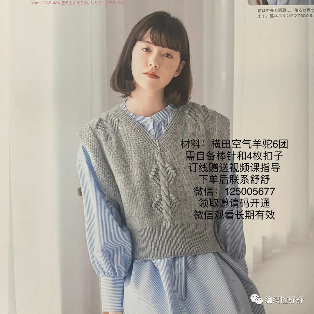 材料包赠视频课|巧可V领纽扣短款背心,多种穿搭方式,巧妙可爱的镂空麻花图案