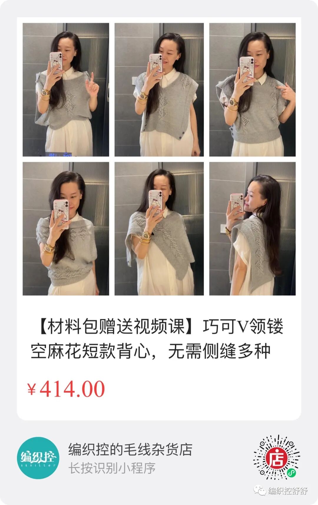 材料包赠视频课|巧可V领棒针短款背心,巧妙镂空麻花图案,多种穿搭方式