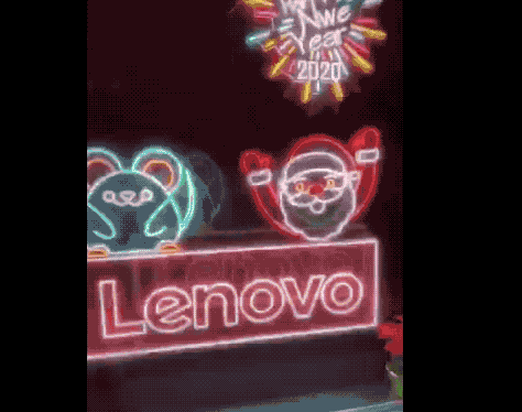 联想霓虹屋有三个场景:鼠年卡通老鼠墙和炫酷霓虹灯,值得一提的是这里还有超级可爱的财神,这个参与感绝对让人够满足。