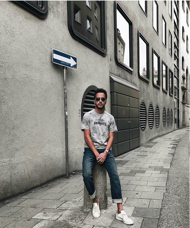 其实想穿好印花,并不难。只要记住,去繁为简的原则。上身选择一件深色印花衬衫,那么下身就搭配一条简单的浅色牛仔裤。重点是,鞋子的选择一定要年轻化,白色运动鞋、帆布鞋是可以很好的减去印花带来的年龄感。