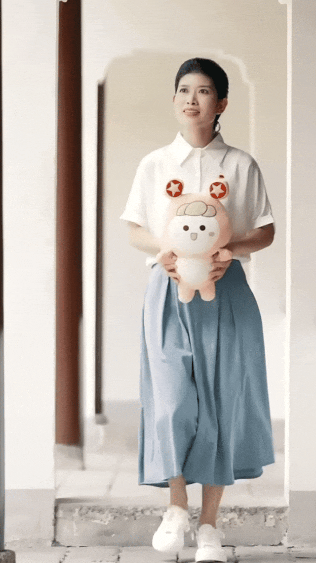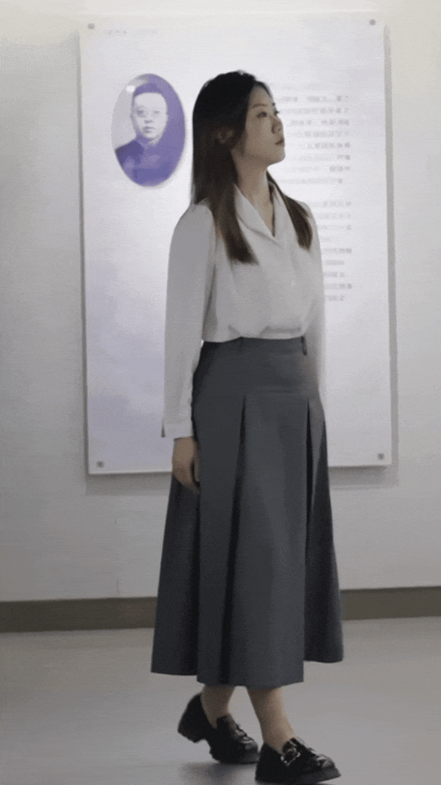 米白色衬衫+蓝色半身裙=文艺温柔莫兰迪色系穿搭