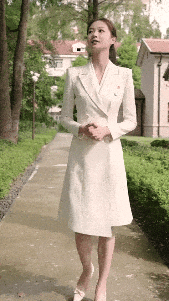 米白色礼服+西装裙=稳重干练白色典雅的西装裙