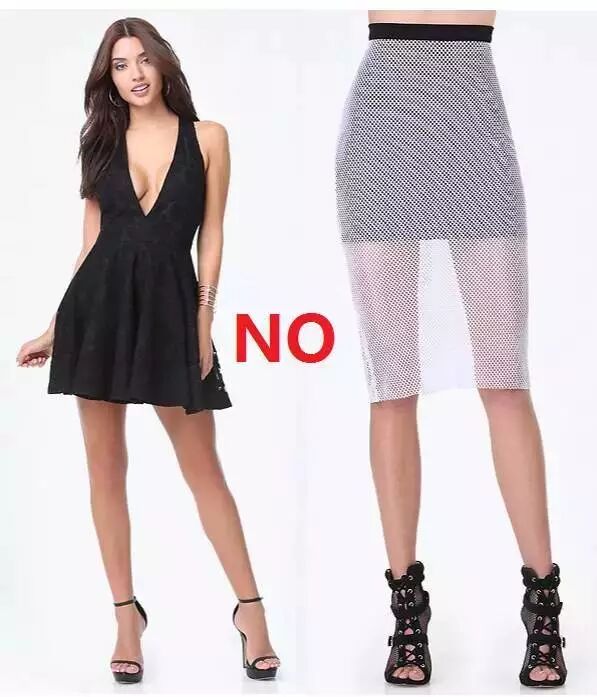 挤乳沟、包臀紧身一步裙、超短紧身裙,全是雷点