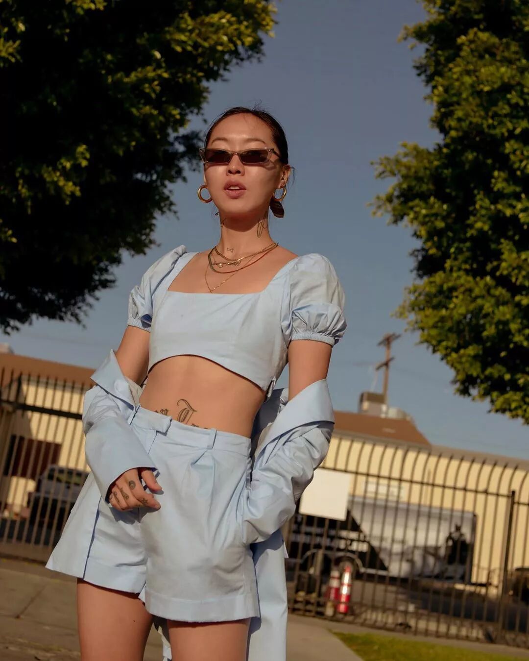 Bella Hadid 使用 all black组合, 用爸爸裤搭配性感的无袖上衣,这身材,实名羡慕!!!Angelababy也是all black组合,夏日穿黑色,只要适当露肤,轻松穿出高级感,还很清凉。