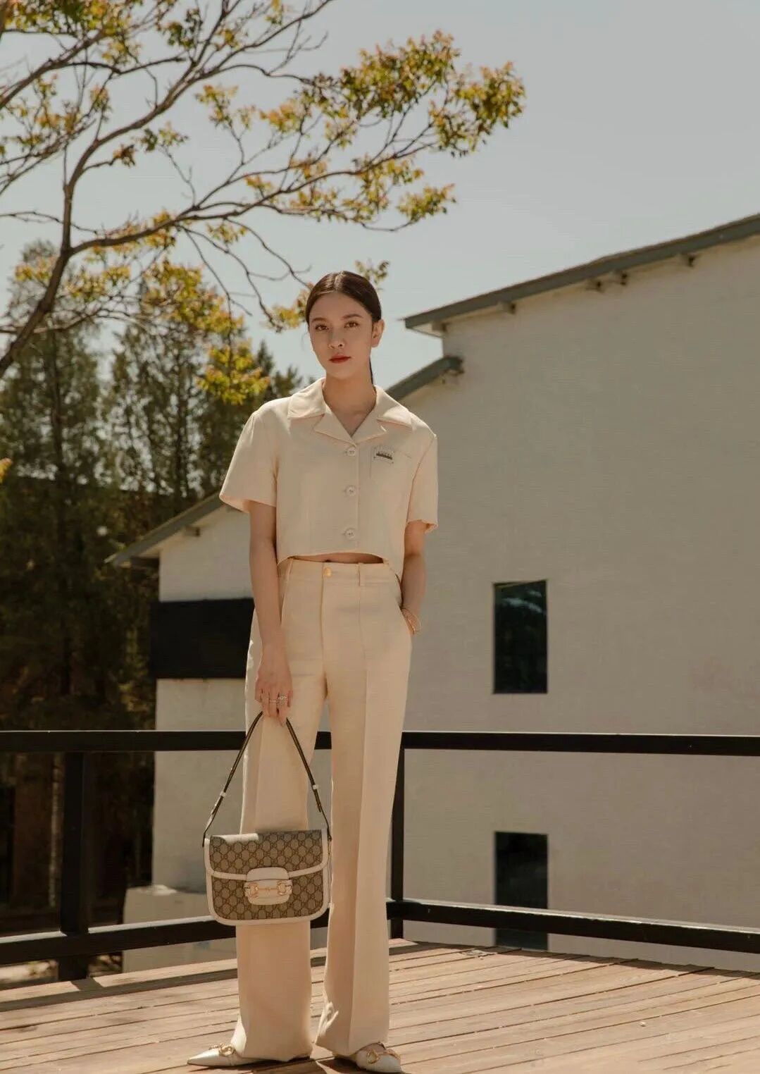 看腻了黑色,就穿彩色呗!被称为时尚风向标的大幂幂表现力max,用治愈绿Gucci的小衫搭配同色阔腿裤。