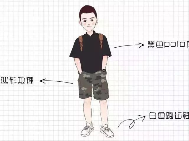 迷彩短裤和黑色的POLO衫绝对是“舒克”和“贝塔”的关系,迷彩本身就是一种流行元素,万年屹立不倒,中和了黑色POLO衫的沉稳,整体的穿着低调但又不失个性。