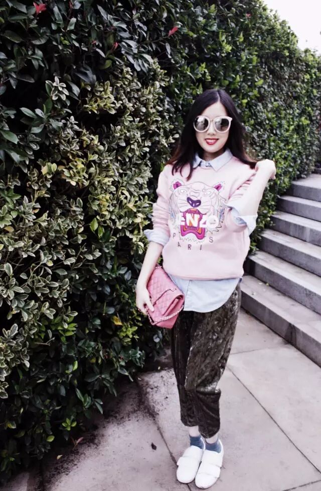 毛衣joa 裙子hm,鞋top shop,包包clare V 墨镜quay。