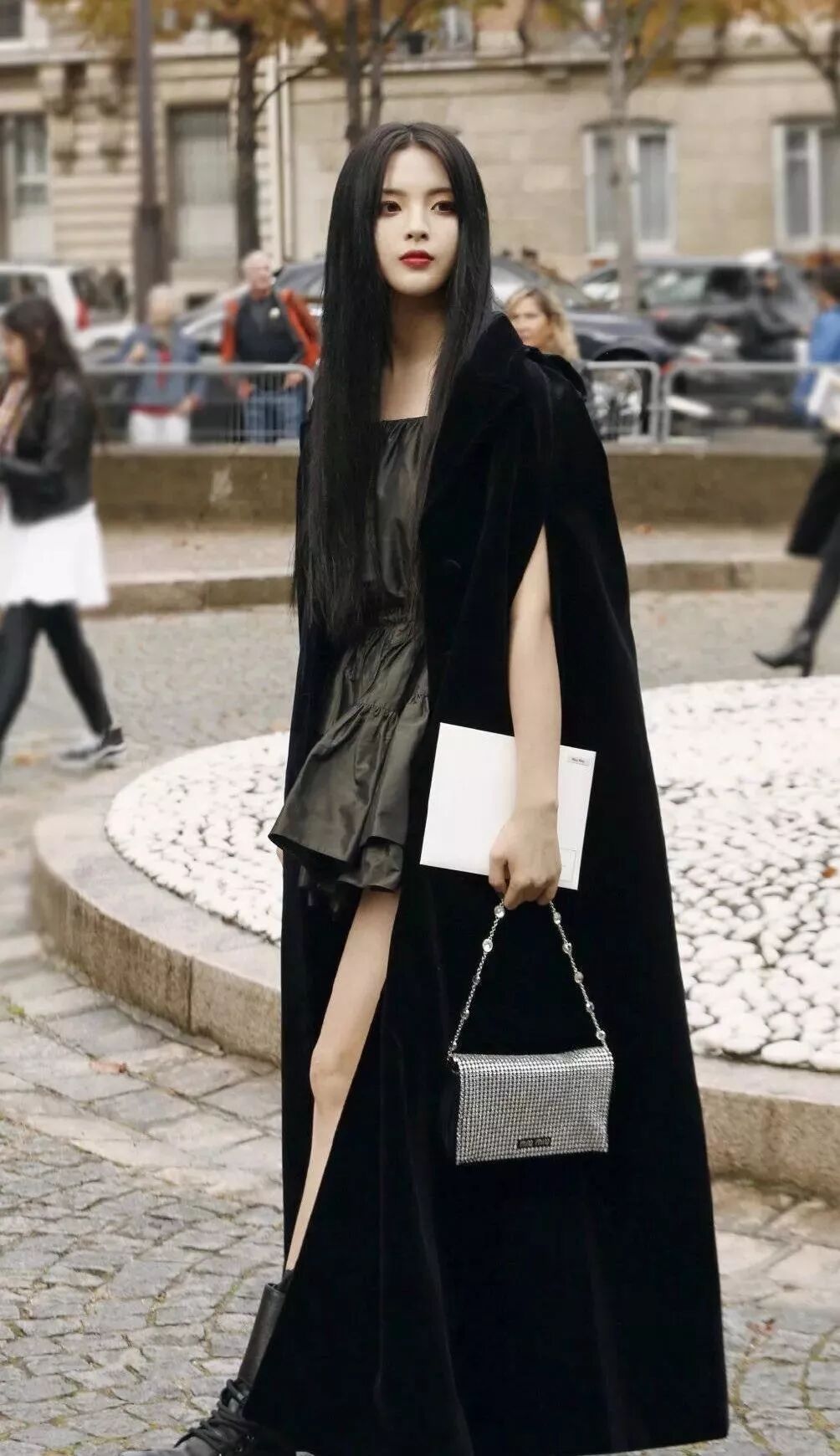 Miu Miu秀场上的杨超越, 以一身黑色丝绒斗篷惊艳全场,一改往日的甜美,变身黑暗精灵~展现黑暗御姐的典范形象 ▼