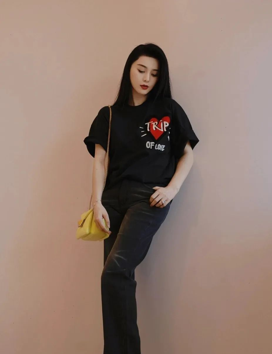 范冰冰黑色系穿搭火出圈!一件黑色短袖+牛仔裤,这些搭配技巧你学会了吗?