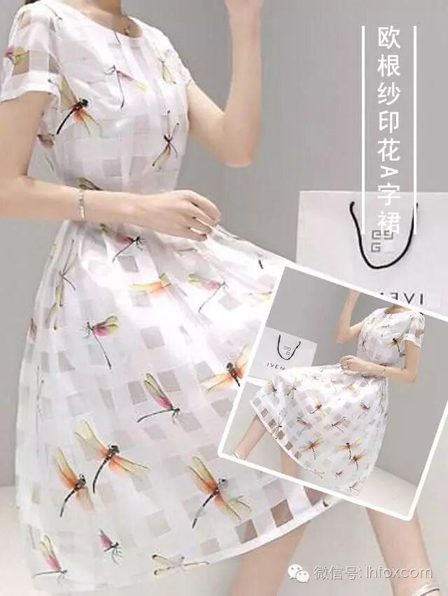 衣服不光是用来装点的,也是用来遮丑的,这款中长款的A字裙巧妙的遮住了大腿根部,让双腿显得更加纤细修长,优雅平滑的圆领将颈部曲线修饰的非常完美性感,蜻蜓的图案给枯燥的夏天增添了一份灵动,高腰的设计让身材娇小的女生也能穿出大长腿的即视感。
