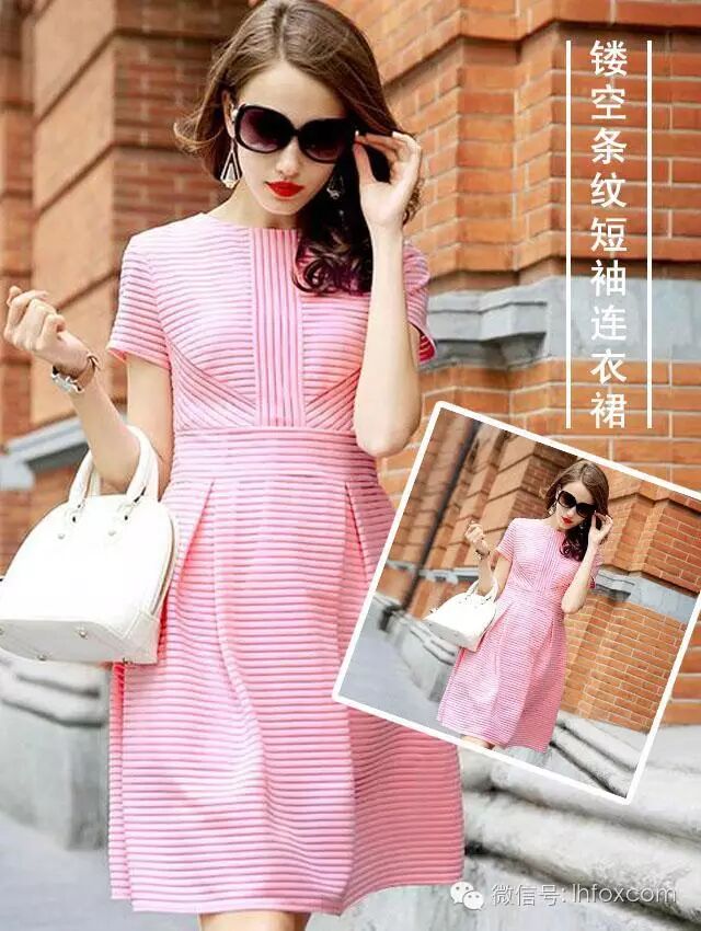 30岁的女人在事业上升期,应酬、酒会、聚会这样的场合会比较多,一条适合这些场合的连衣裙也是必不可少的。这款连衣裙有粉色和白色两种比较淡的颜色,清新靓丽,很适合夏天这个季节,衣服也非常适合皮肤白的女人,穿起来很时髦洋气。微微收腹的设计,将你的好身材恰到好处地展示出来,镂空和条纹组合性感而不失端庄大气,下摆百褶造型,褶皱丰盈多姿。在酒会上穿上这条连衣裙,百媚众生不在话下。