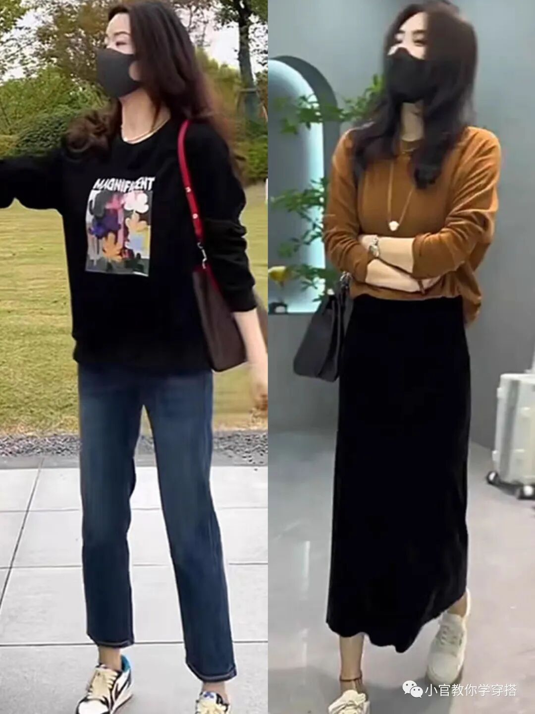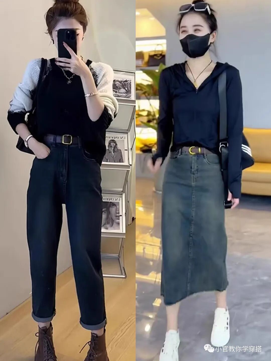 首先,选择合适的上衣是关键。建议选择长度及臀部的上衣,不仅能够修饰身材比例,还能展现出高挑的视觉效果。此外,避免选择过于紧身的衣物,宽松的版型更符合秋冬季的氛围。在颜色方面,可以选择深色系,如黑色、深灰色、深蓝色等,这些颜色能够强调身材的高挑感。